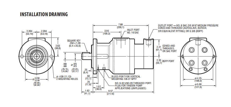 Split-Flow® 型号可为同步执行器运动或多功能回路提供多个输出。有关选件和可用性,请联系 Dynex 销售部门。规格 - 键轴