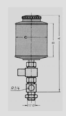 型号 A(mm) B(mm) C(mm) 容量 MOS 140 150 60 60 140 ml MOS 200 170 80 60 200 ml MOS 500 210 100 80 500 ml MOS 1000 250 120 100 1000 ml MOS 2000 295 150 133 2000 ml MOS 3000 325 180 150 3000 ml 二、UNI 手动多滴油润滑器(型号 MTM)