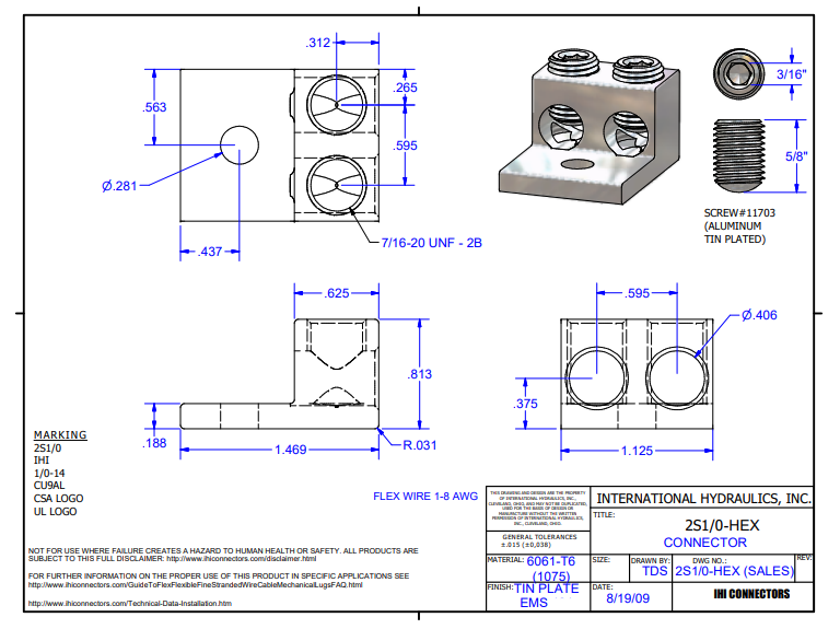 二、IHI Connectors 接线端子、连接器 2S2/2S2-HEX、2S1/0、2S1/0-HEX技术参数