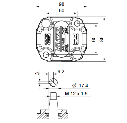 - B:T.2 = 67.5 [牛米] CI002 - 平行 17.42 O 6.45 G 1:8 12.5 M12x1.5 17.42 O 4 9.4