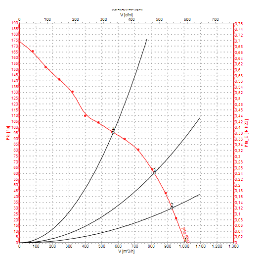 电压 [伏特] 频率 [赫兹] 转速 [转 / 分钟] 功率 [瓦特] 电流 [安培] 风量 [立方米 / 小时] 静压 [帕斯卡] 1 230 50 2630 60 0.30 880 0 2 230 50 2585 64 0.31 795 30 3 230 50 2530 66 0.31 680 60 4 230 50 2480 69 0.32 540 80 测量值